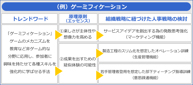 人材育成の原理原則として、組織戦略から人事プログラムを描くことは王道です。しかし、今回のようにトレンドワードの原理原則を理解すれば、その事象や現象を、組織戦略推進に向けた、より効果的な活用方法を見出すことが出来るようになります。