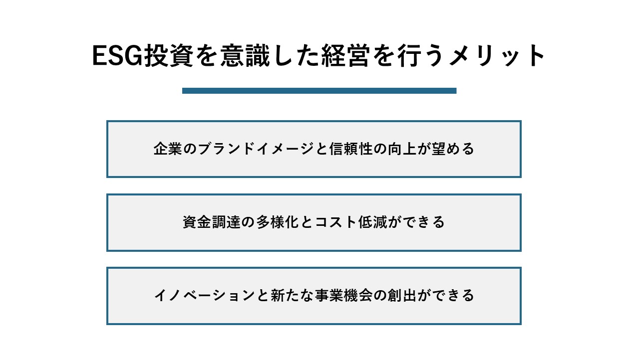 資金調達の面でも大きなメリットをもたらします。近年、世界の機関投資家は、投資判断の際に企業のESGへの取組みを重要視する傾向を強めています。日本の年金積立金を運用するGPIF(年金積立金管理運用独立行政法人)もESG投資を推進しており、その流れは世界的に加速しています。投資家から高く評価される企業は、ESG投資の対象として選ばれやすくなります。これまで接点のなかった投資家からの資金調達が可能になるなど、資金調達先の多様化が期待できます。結果として、安定した資金調達基盤を築くことができ、経営の安定化に繋がるのです。