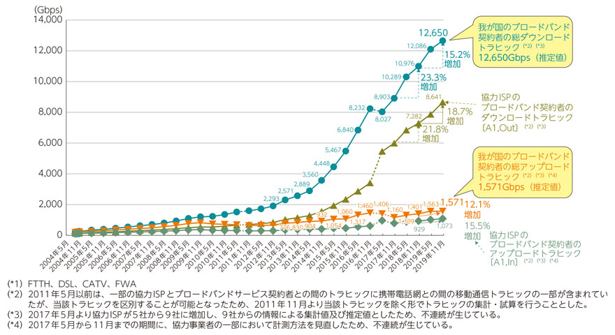 (出典)総務省(2020)「我が国のインターネットにおけるトラヒックの集計結果(2019年11月分)」